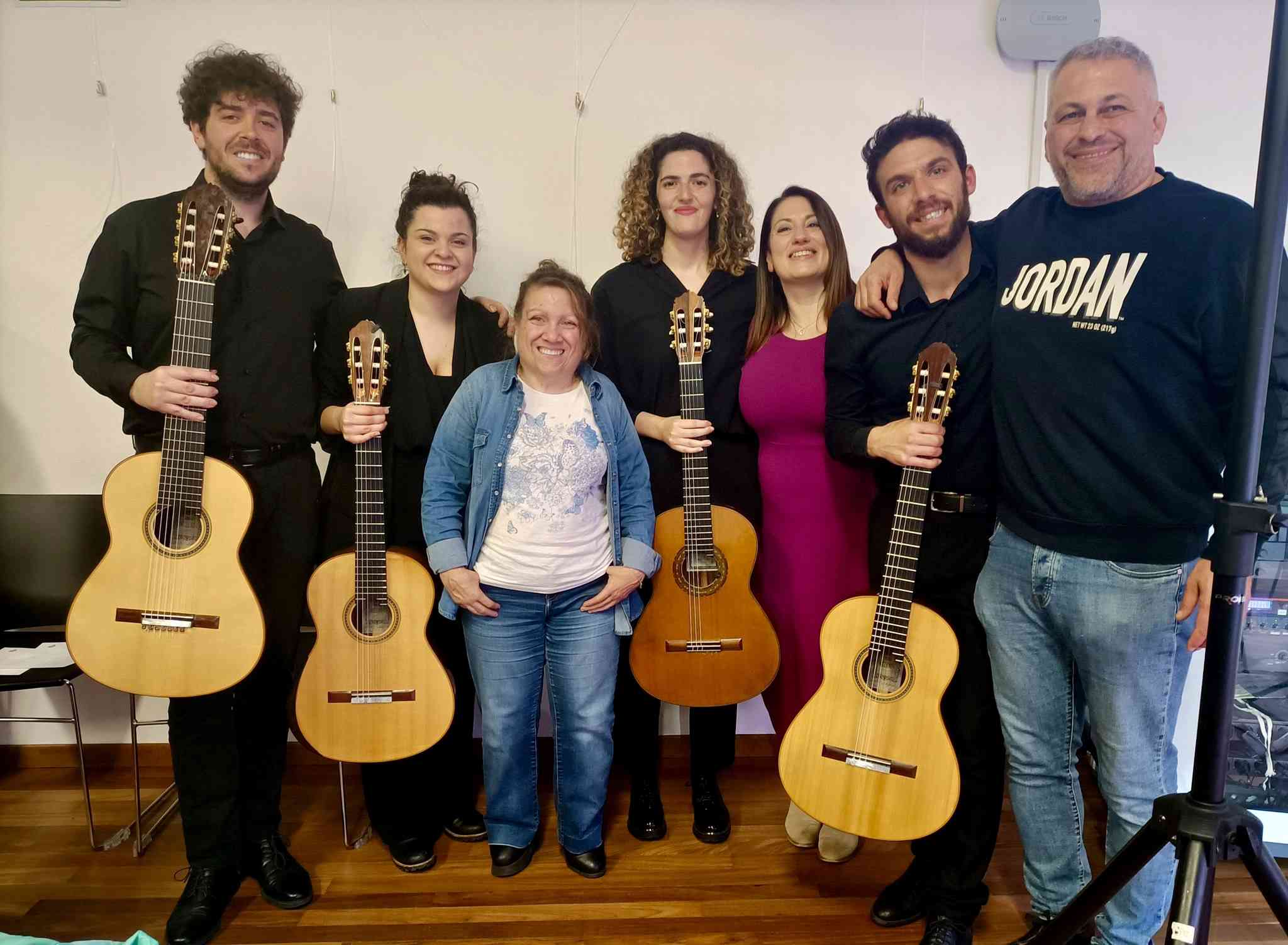 L’affiatamento di questi chitarristi era veramente notevole: si sono scambiati le prime parti e l’accompagnamento con una fluidità sorprendente. Ognuno ha regalato, con il proprio tocco, una personale visione dei vari brani. Il pubblico ha seguito incantato e ammirato l’intera performance: un apprezzamento espresso con trasparenza ed entusiasmo attraverso calorosi applausi. Come bis è stata eseguita “‘O sole mio” di E. Di Capua, nell’arrangiamento di Roberta Mercorio. I musicisti hanno donato generosamente al pubblico anche un ter suonando “Libertango”, famoso brano di Astor Piazzolla.