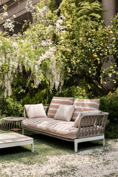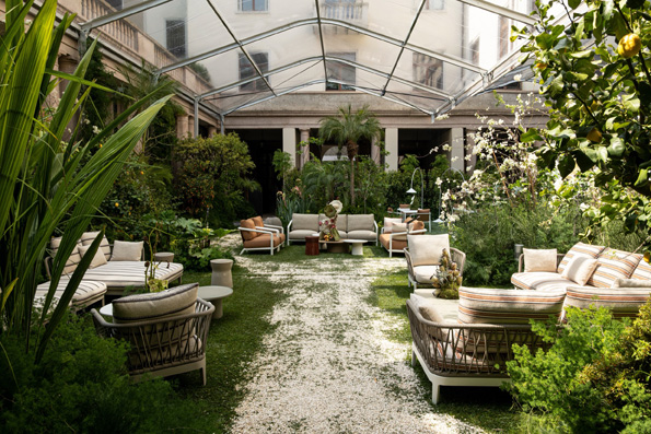 Alla Milan Design Week 2026, Molteni&C occupa il Garden Senato di via Senato 14 con un’installazione che trasforma la collezione outdoor in un percorso narrativo tra botanica, suono e luce. Il progetto è firmato da Elisa Ossino Studio e si articola in sei ambienti distinti, ciascuno con una propria identità vegetale e atmosferica.