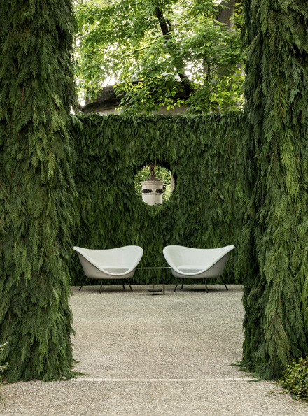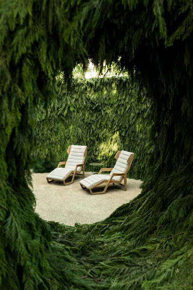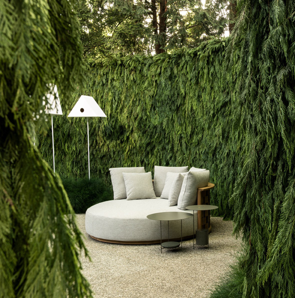 La collezione outdoor curata da Vincent Van Duysen – con pezzi di Dordoni Studio, Foster + Partners, Yabu Pushelberg e Gio Ponti – abita questi paesaggi come se li avesse sempre abitati. A completare l’esperienza, un soundscape firmato Bang & Olufsen che modella l’identità acustica di ogni giardino, mentre le lampade Vibia x Molteni&C disegnano la luce. Il corridoio d’uscita diventa una videoinstallazione immersiva – foresta digitale generata da algoritmi frattali – in cui il corpo del visitatore si intreccia con la natura virtuale.