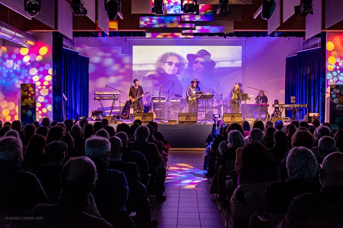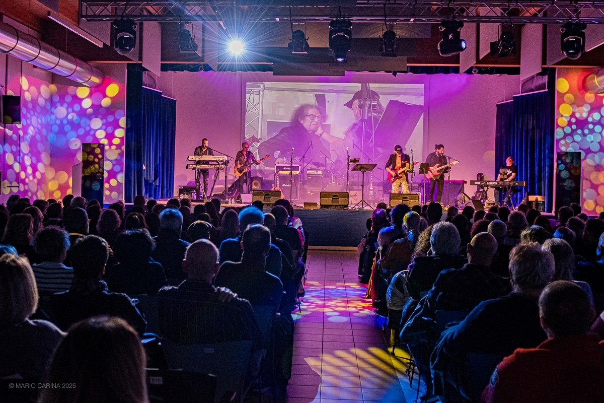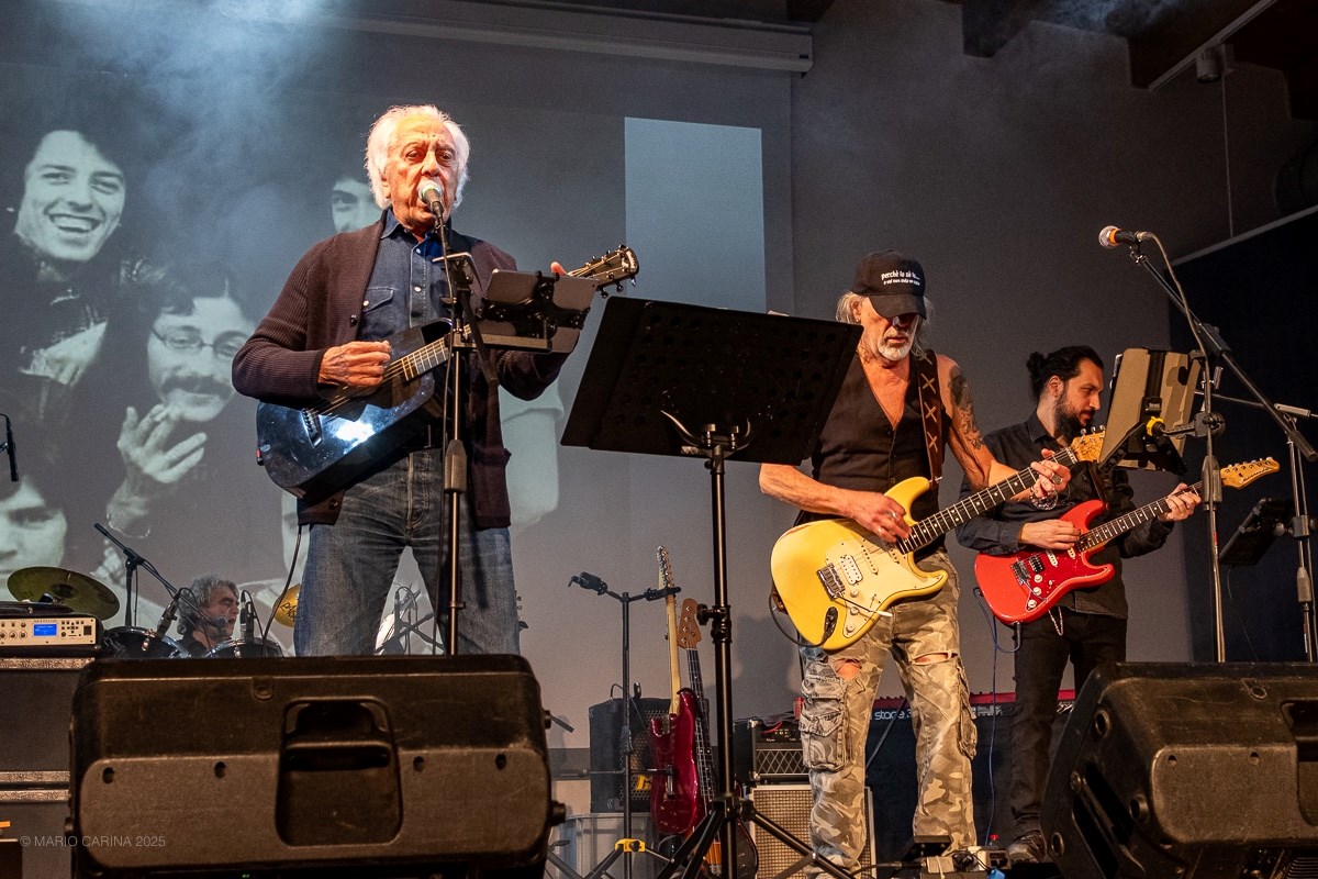 È poi finalmente giunto il momento di Mario Lavezzi che ha ricordato il periodo de “Il Volo”, gruppo nato nel 1974, formato da Alberto Radius, Mario Lavezzi, Gabriele Lorenzi, Vince Tempera, Bob Callero e Gianni Dall’Aglio. Ha cantato e suonato “Molecole” e “Varietà”.