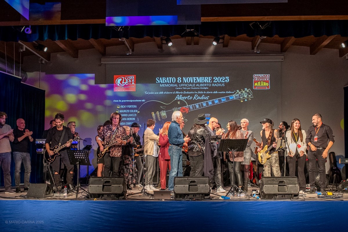 La moglie di Radius ha offerto come premi due amplificatori Line6, appartenuti ad Alberto. L’estrazione, effettuata da due bambine, ha premiato, per il pubblico, un saxofonista, e per gli artisti, Maurizio Solieri.