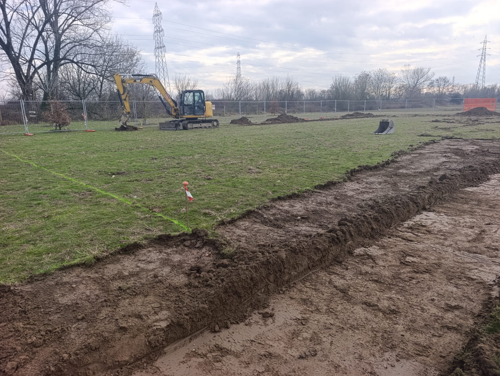 Per le operazioni finali di rifinitura, in particolare la colorazione del campo tramite resinatura, sarà necessario attendere condizioni climatiche più miti e asciutte, indispensabili per garantire la corretta esecuzione dell’intervento.