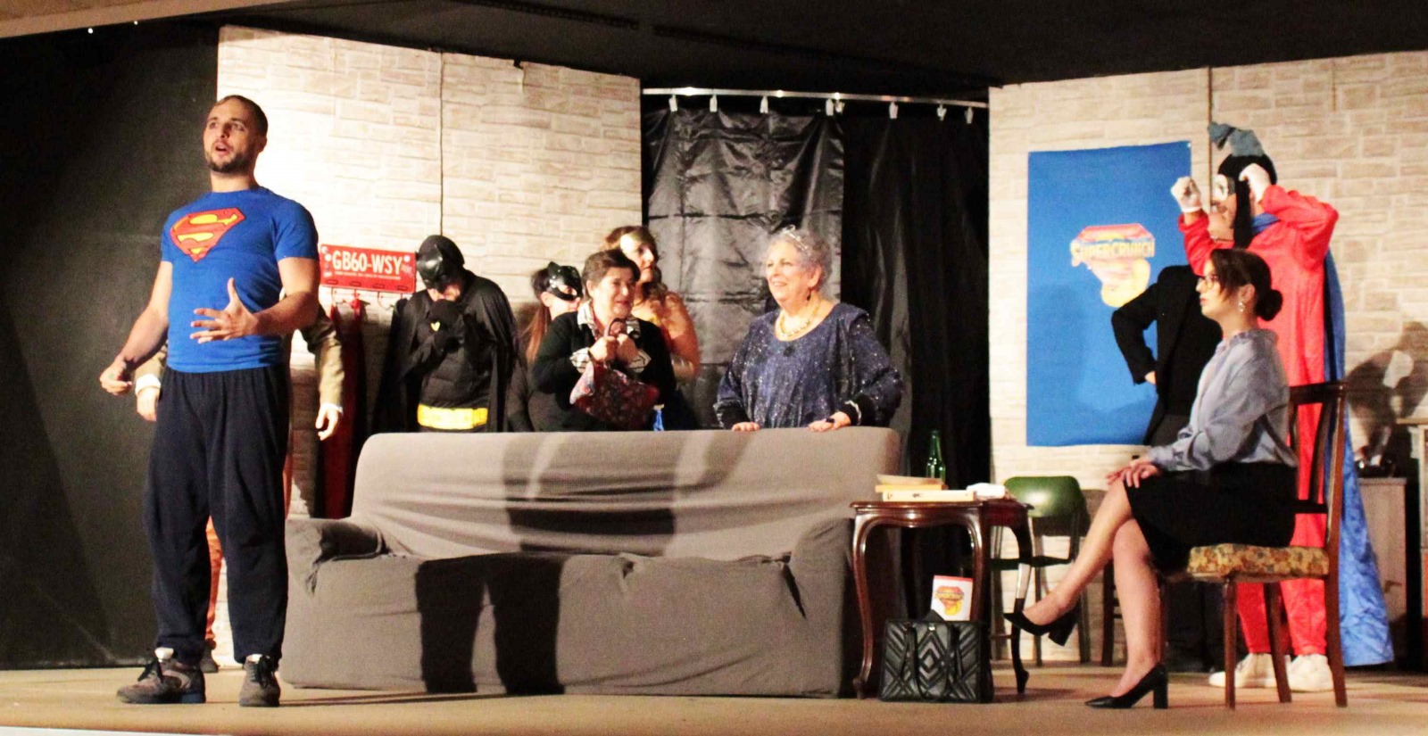 “Supergiù” è una commedia in due atti – scritta da Giorgio Giunta e diretta da Gabriele Grosso – e ha dato modo agli astanti di riflettere su alcune tematiche quali la depressione, il sentirsi inadeguati, il riconoscere le proprie fragilità, il valore dell’amicizia. La compagnia teatrale ha coinvolto il pubblico in modo strepitoso e dinamico.