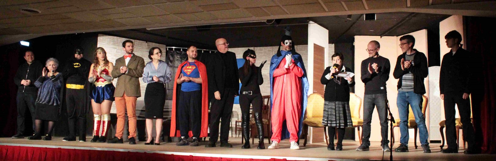 A fine spettacolo, Laura Malizia – presidente di V&E, co-regista di “Supergiù” – ha ringraziato gli attori, i tecnici, i costumisti, gli scenografi che hanno preso parte allo spettacolo.