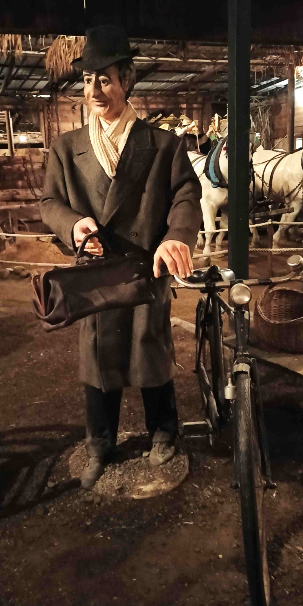 Tutto questo è nato da un’idea di Giovanni Alghisio, un fabbro dalle mani d’oro, che oltre al ferro sapeva lavorare il legno ed il gesso con i quali ha realizzato tutti i vari personaggi. È iniziato nel 1989 con l’allestimento della rappresentazione della Natività e mano a mano cresciuto ed oggi si estende su un’area di circa 3000 metri quadrati dove trovano posto oltre 300 statue a grandezza naturale raffiguranti persone e animali. Un percorso curato nei minimi dettagli, nel quale si susseguono mestieri e personaggi. Inoltre è stato fatto un grande lavoro di ricerca dei carri, degli arredi dell’epoca e degli attrezzi dei vari mestieri.