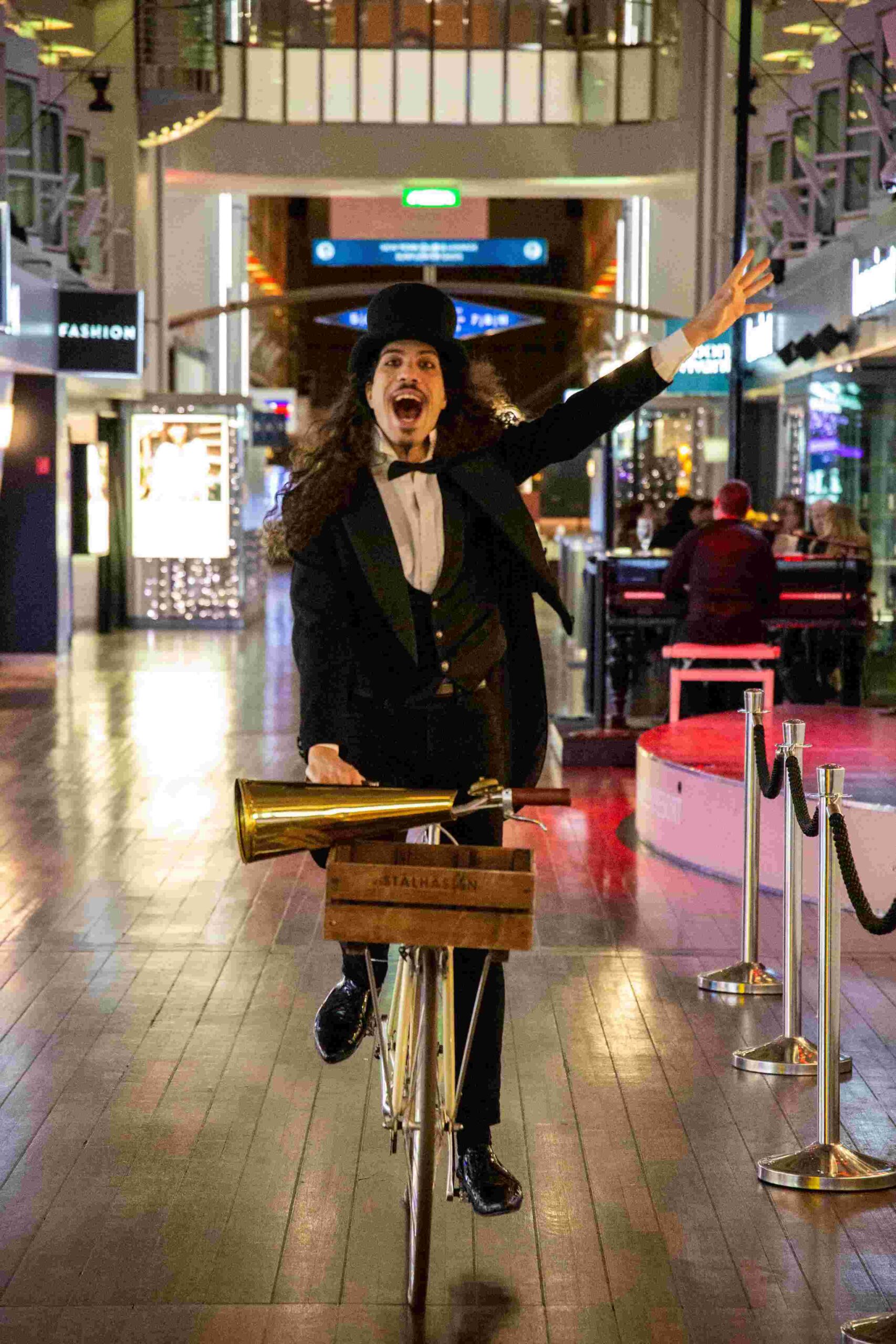 Ha presentato in modo impeccabile il classico “Il Circo delle Pulci” con le simpatiche pulci immaginarie Renata e Jean-Pierre. Nella seconda parte dello spettacolo, avendo tolto per motivi scenici il radiomicrofono, ha mostrato anche le sue doti di mimo. Ha anche fatto un romantico siparietto eseguendo elegantemente un ballo con un manichino vestito di pizzo bianco. Nel numero finale si è infilato all’interno di un enorme pallone, uscendone solo con l’aiuto di una persona del pubblico che lo ha fatto scoppiare utilizzando una grande punta. Un artista completo che ha dimostrato tutte le sue doti con uno spettacolo davvero magico.